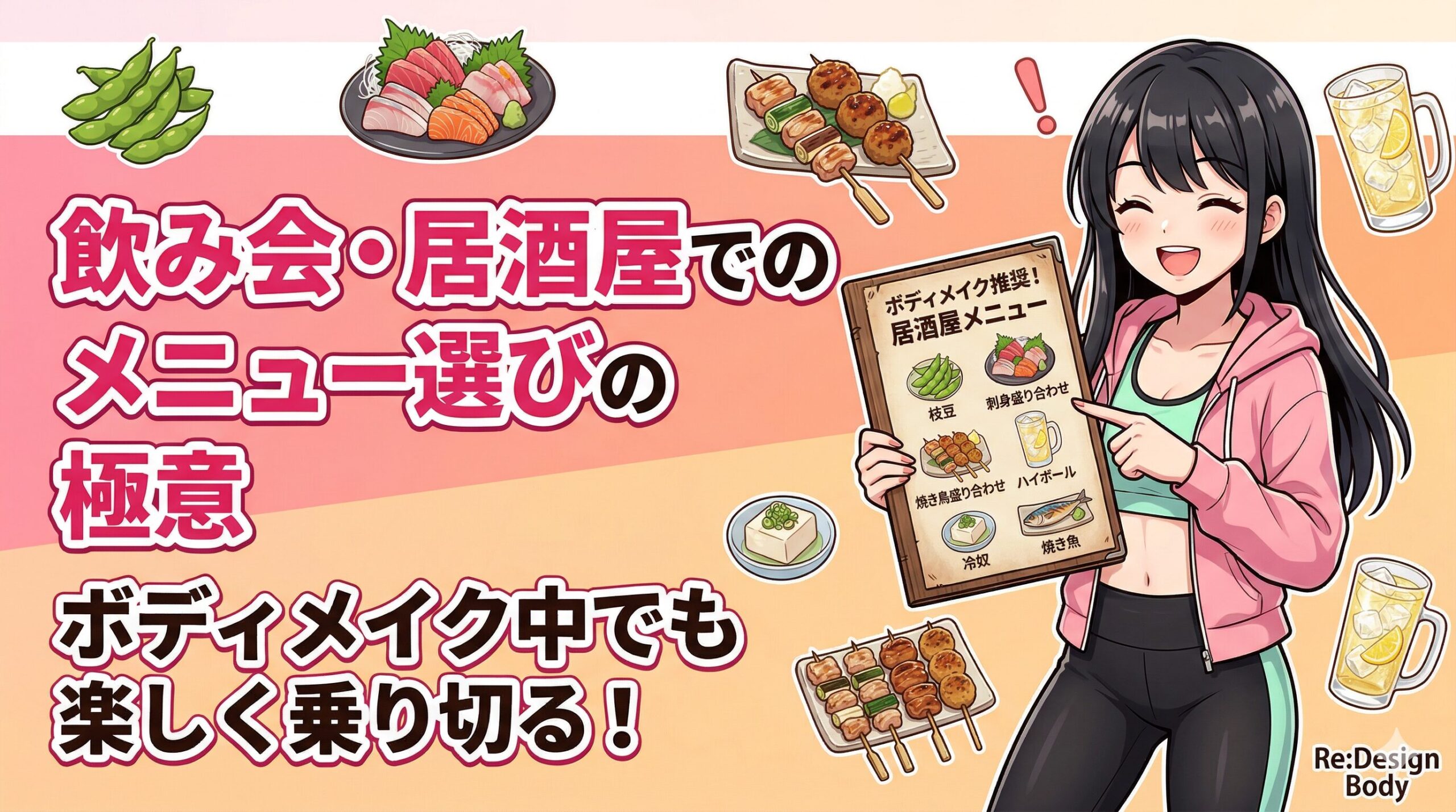 この記事では、居酒屋でのメニューの選び方・お酒の選び方・NGな行動まで、ボディメイク中の飲み会攻略法を全部まとめました。